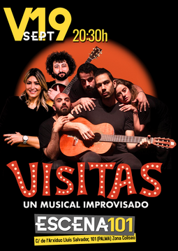 VISITAS es un espectáculo de impro en el que, en tono realista y a partir de las sugerencias del público, vemos qué puede dar de sí una visita inesperada. En este espectáculo, le damos una vuelta de tuerca más para convertirlo en un musical improvisado, incorporando canciones creadas al momento.